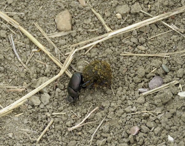Bug pushing dung uphill